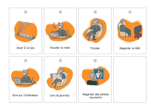Jeu de cartes qui illustre le quotidien des personnes âgées pour communiquer facilement avec elles.
